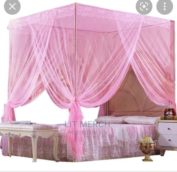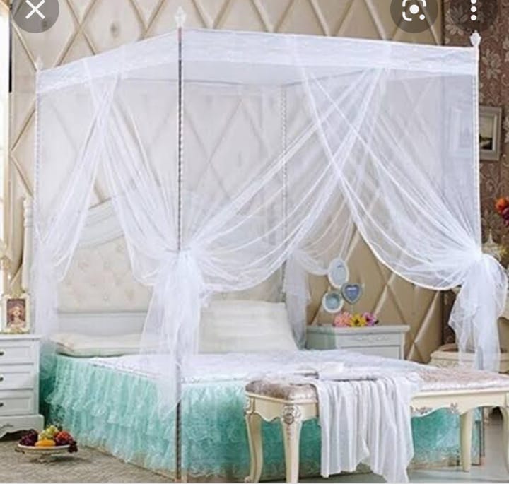 Straight mosquito net with strong metallic stand available in different sizes and colors