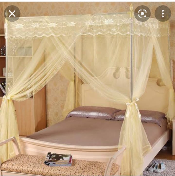 Straight mosquito net with strong metallic stand available in different sizes and colours